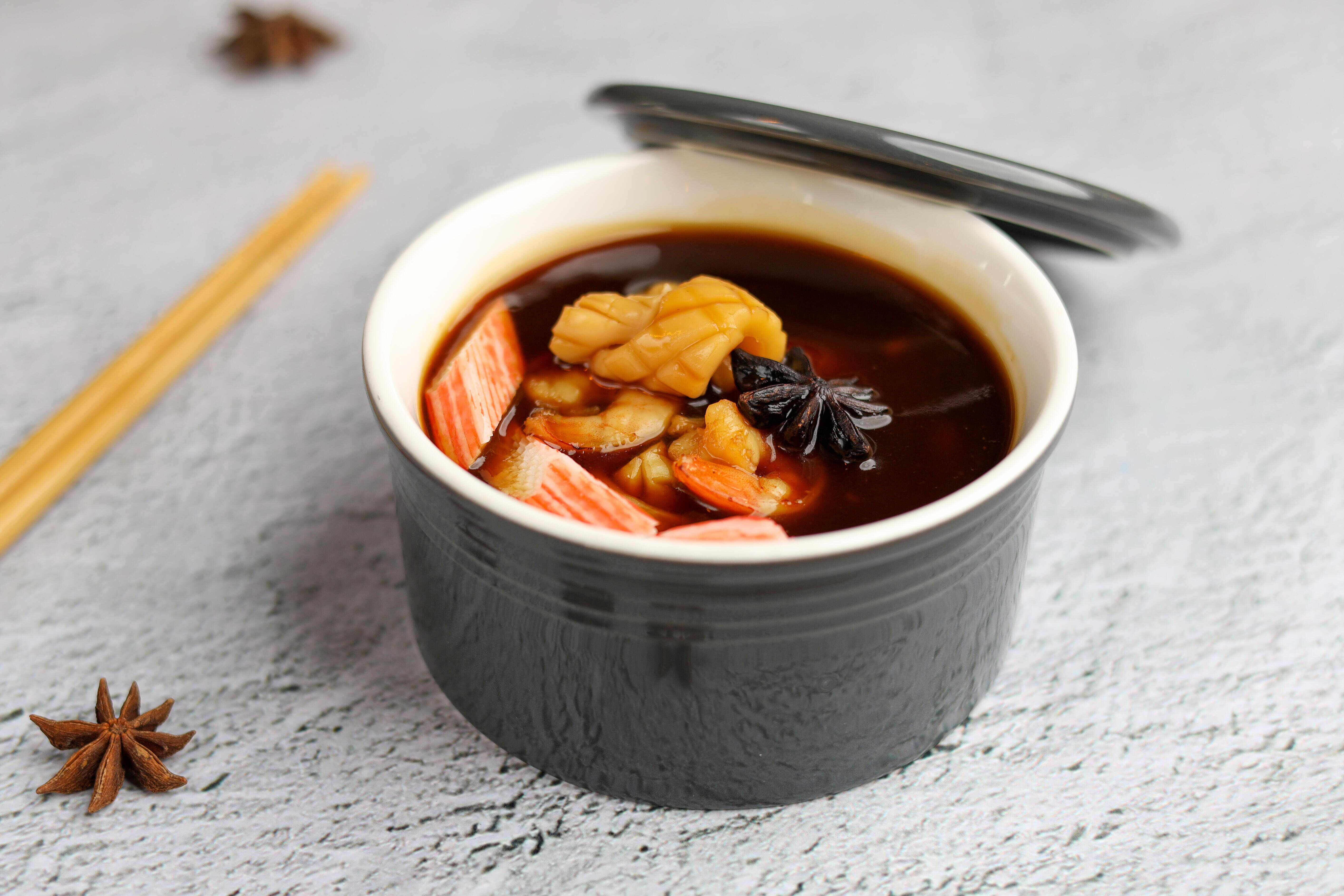 شوربة سوشي رول مع البحريات ,الزنجبيل الطازج,الثوم المهروس, والبهارات الخاصة ونجم الينسون (شوربة صحية و دافئة)