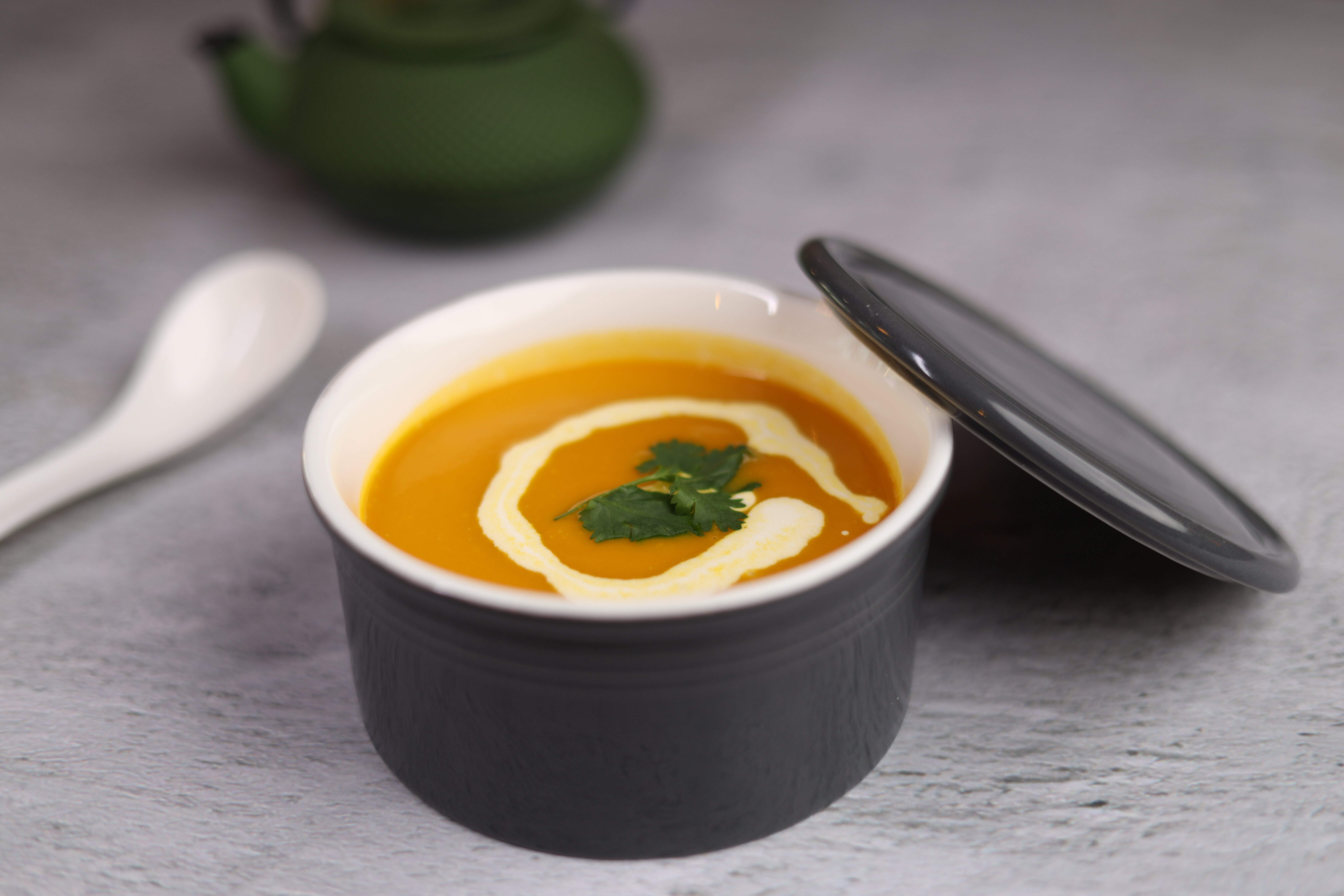حساء اليقطين هذا عبارة عن مزيج لذيذ من هريس اليقطين الطازج والجزر والبصل والمرق والقشدة