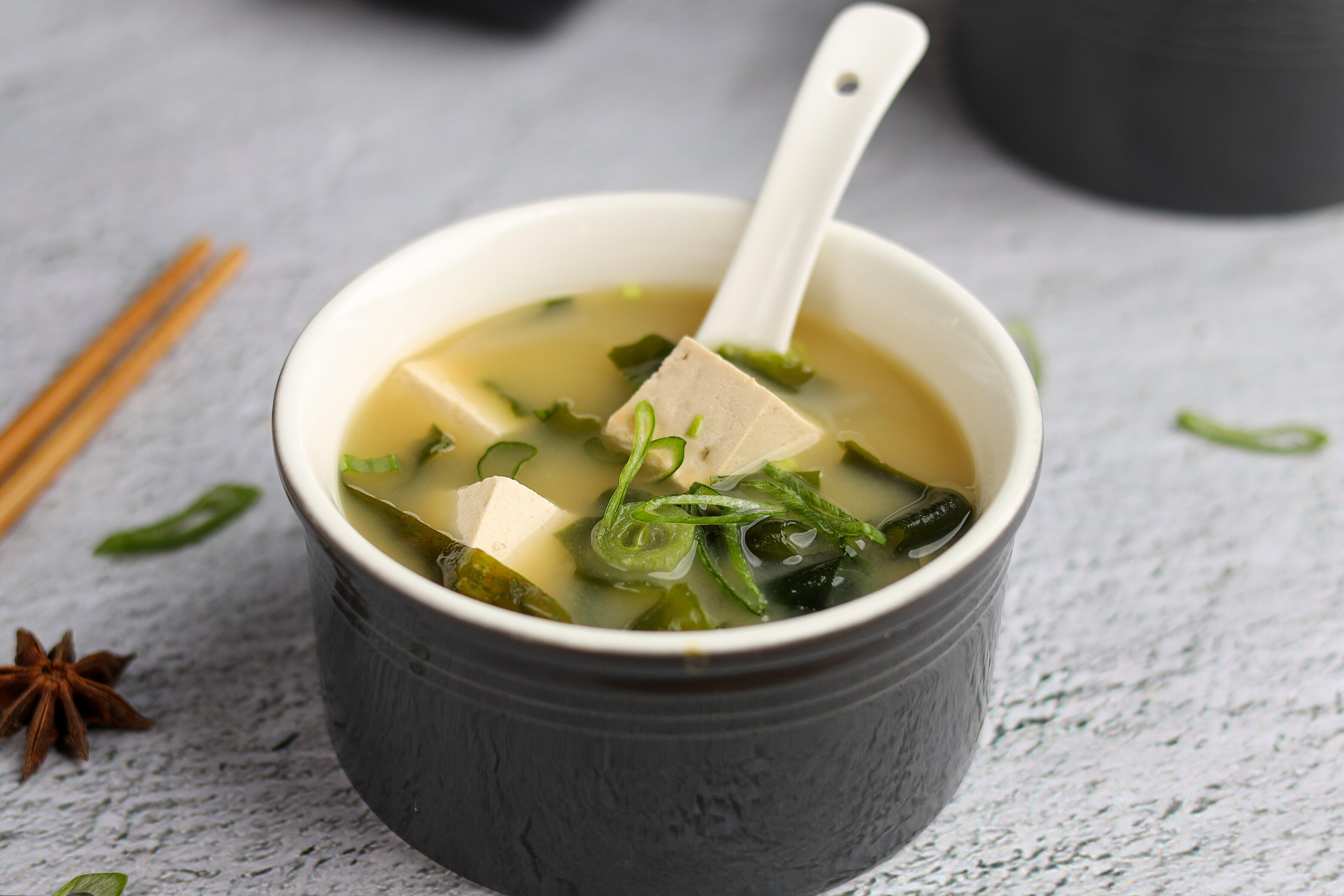 حساء ياباني تقليدي يتضمن مرقة داشي ومعجون ميسو طري مليء بالبروبيوتيك،