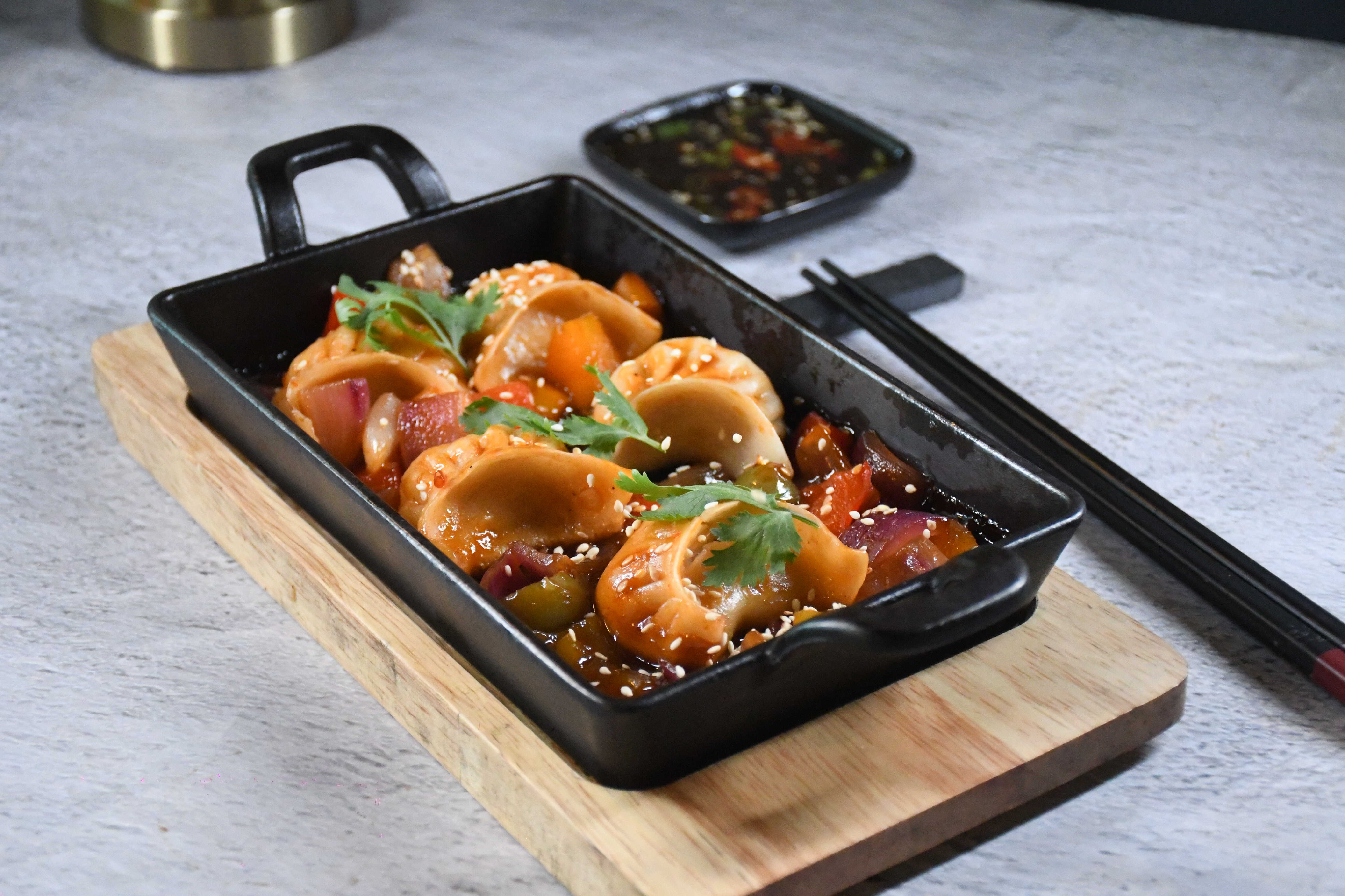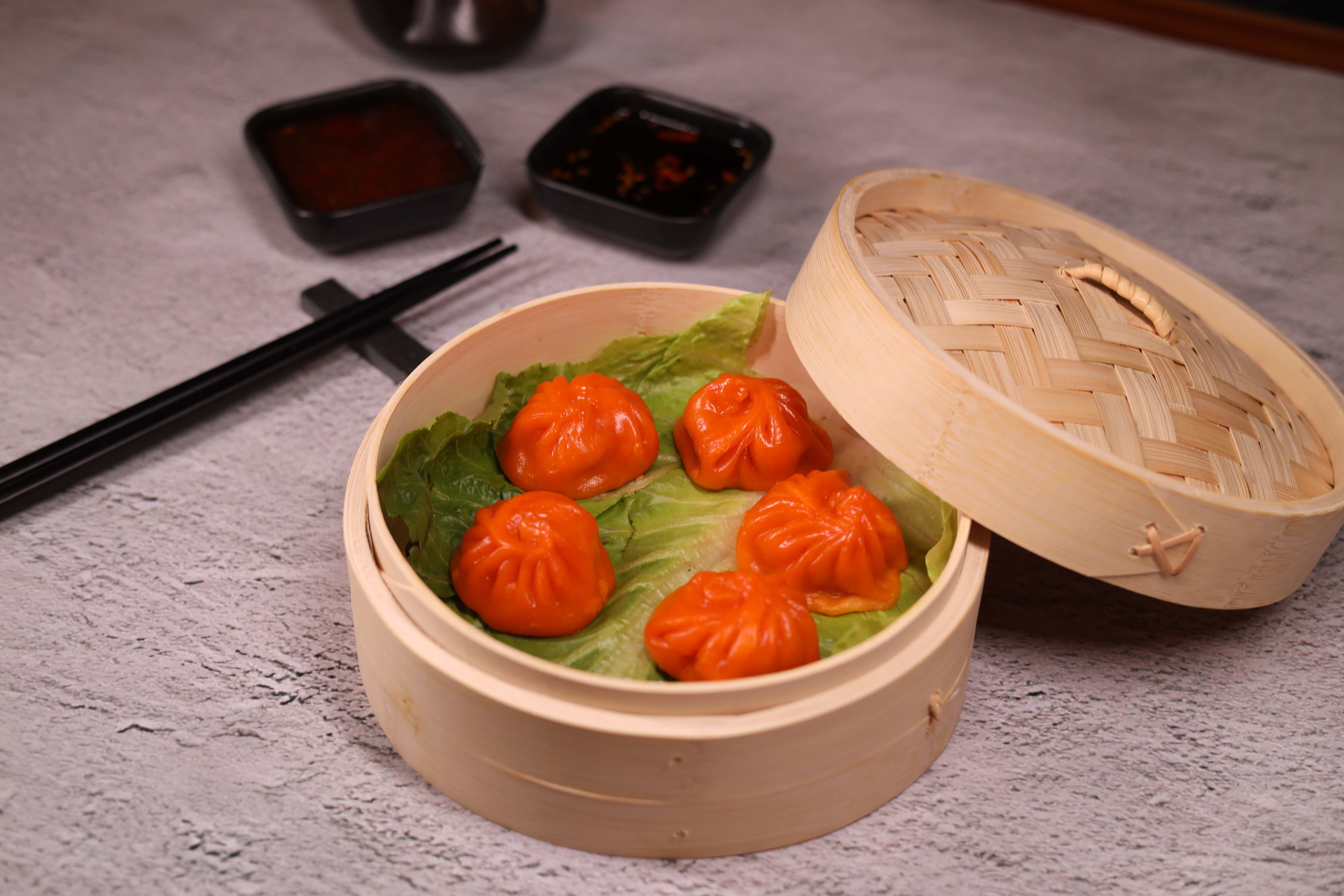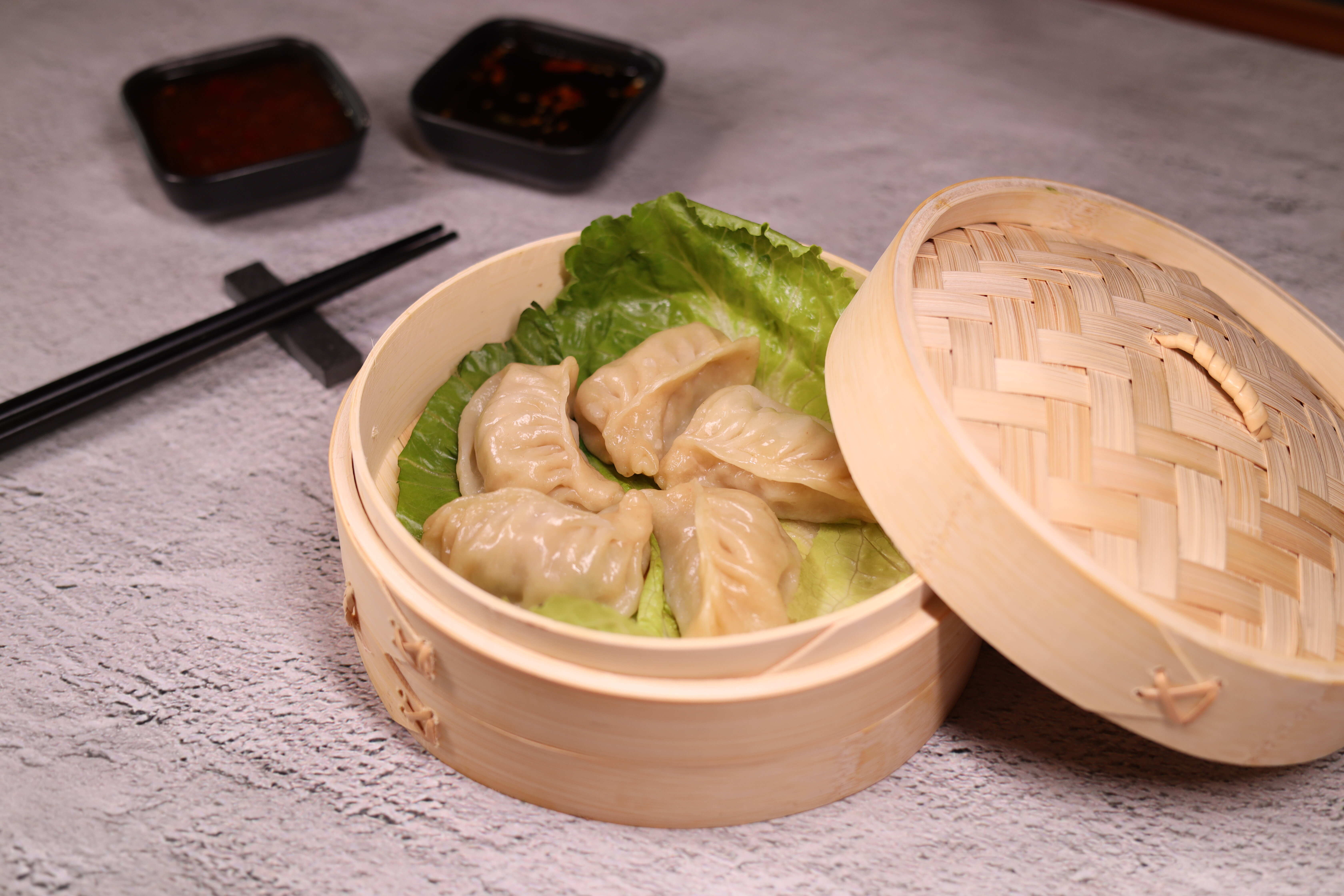 مزيج من الفطائر بالنكهة الاسيوية المطهوة على البخار مع الخضار والدجاج والروبيان
