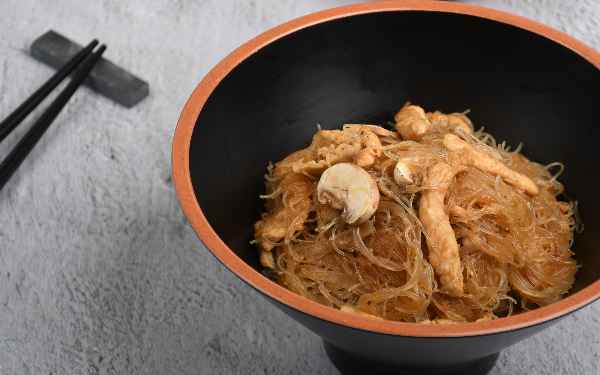 شعيرية الرز بالدجاج مصنوعة من دقيق الأرز، وهو ما يفسر سبب تصنيفها أيضًا على أنها شعيرية الأرز