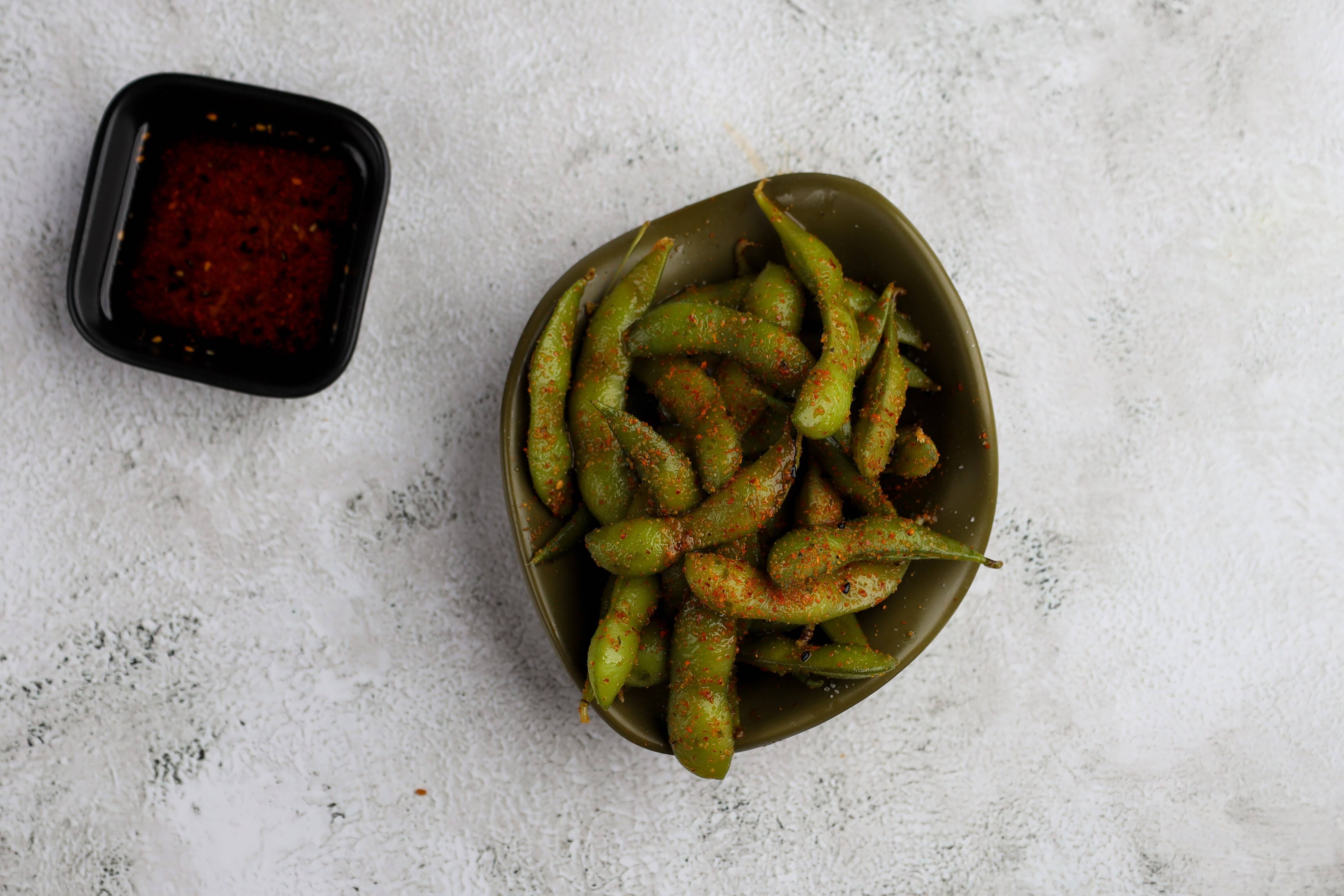 حبوب ادامامي هي فول الصويا الطازجة بالثوم و الفلفل الحار