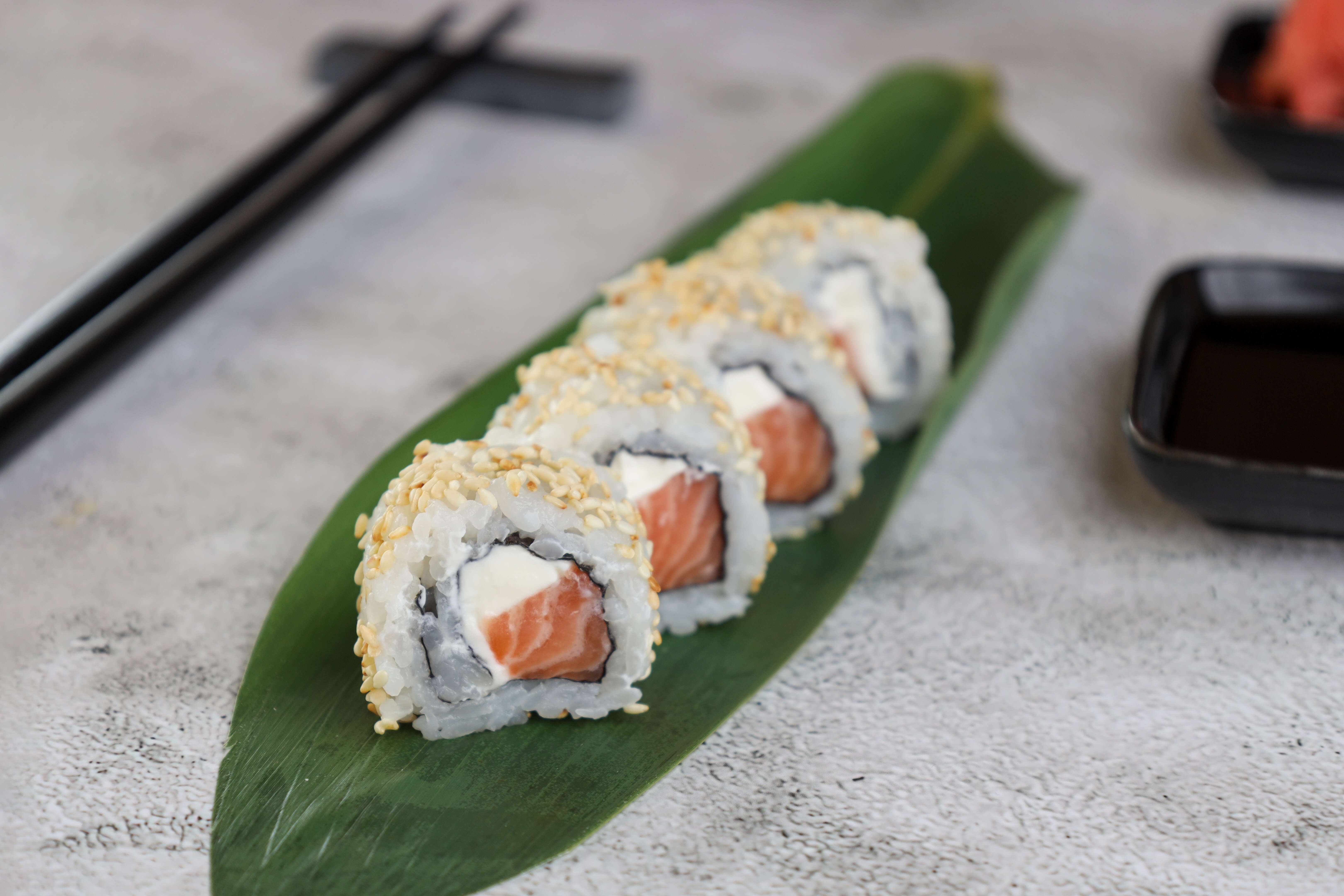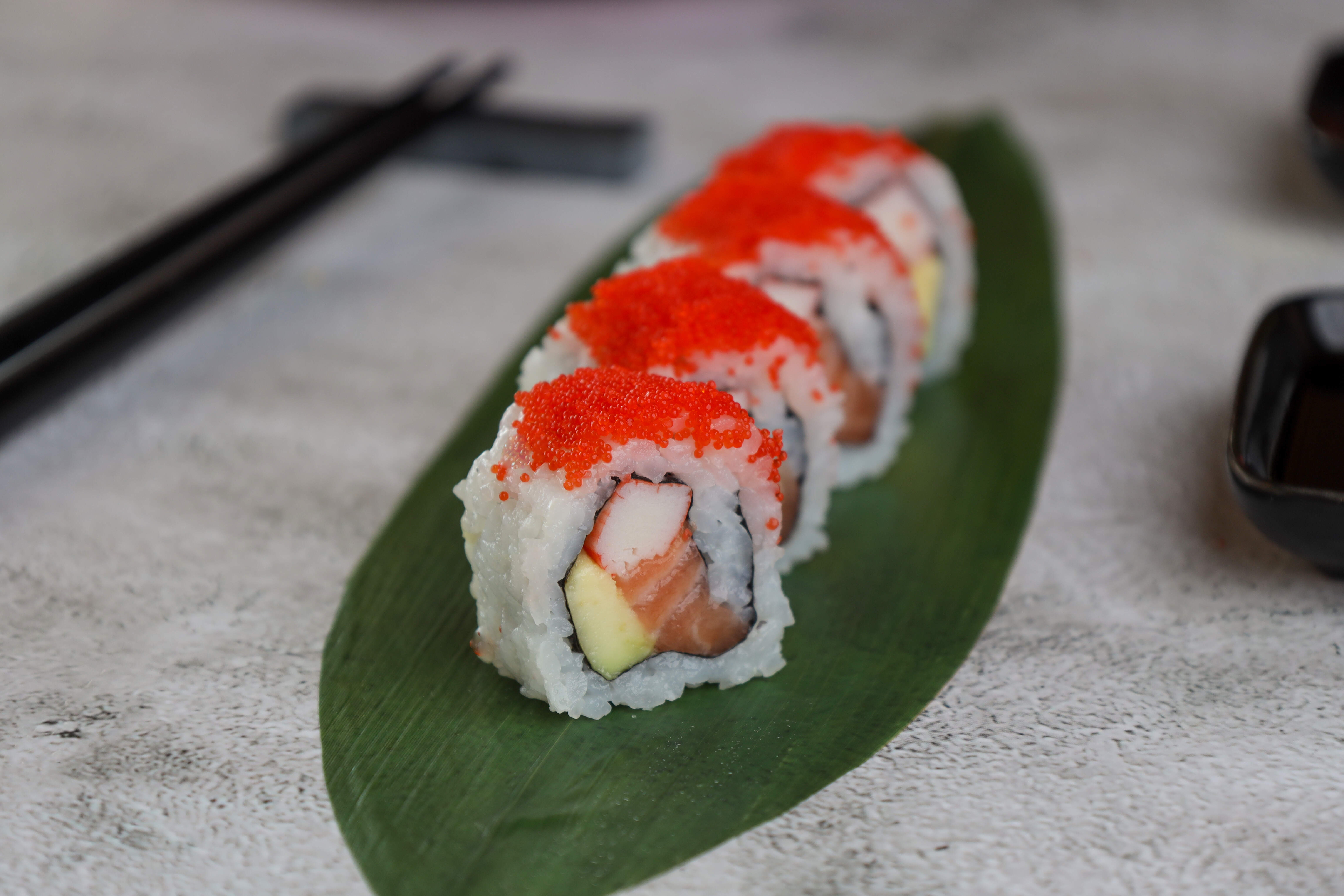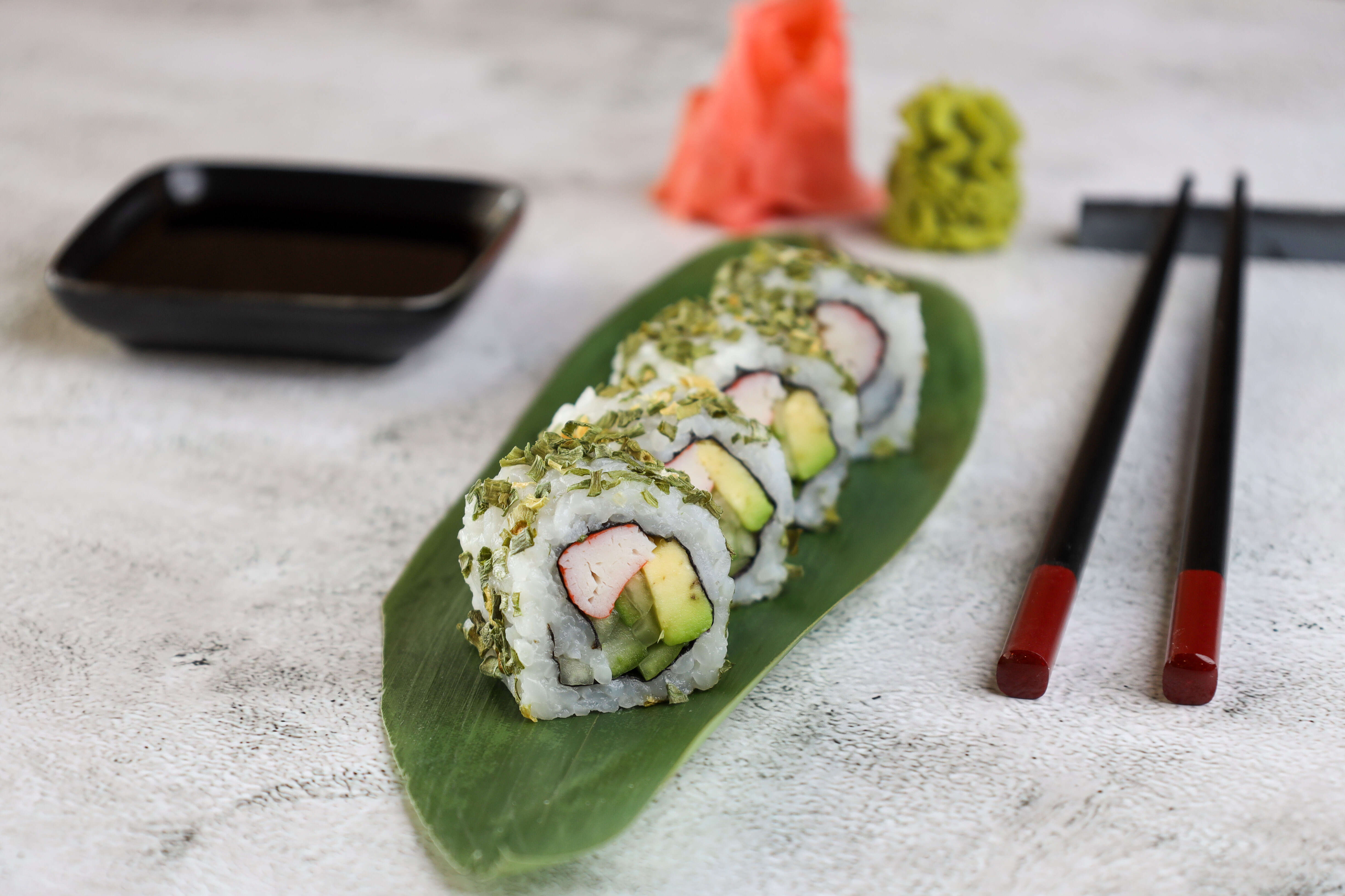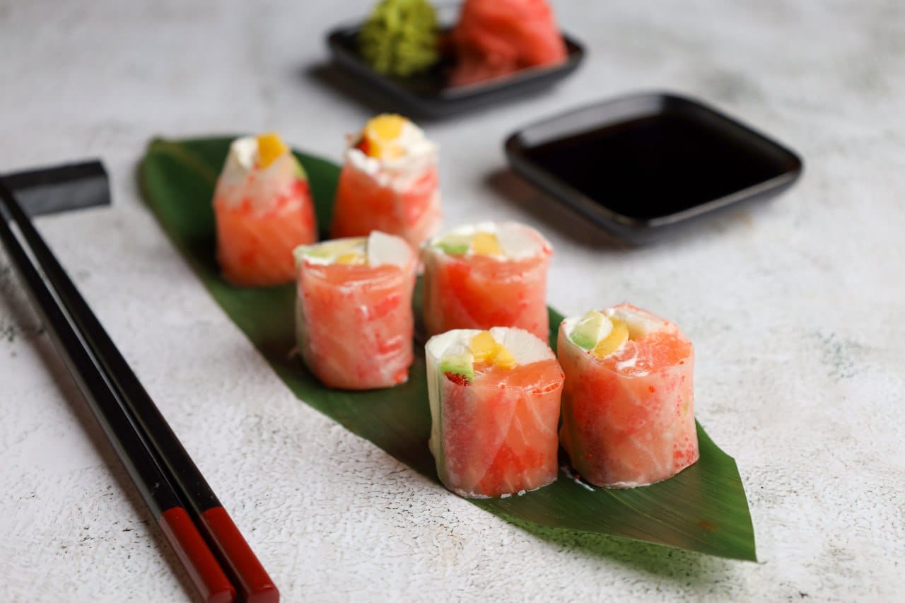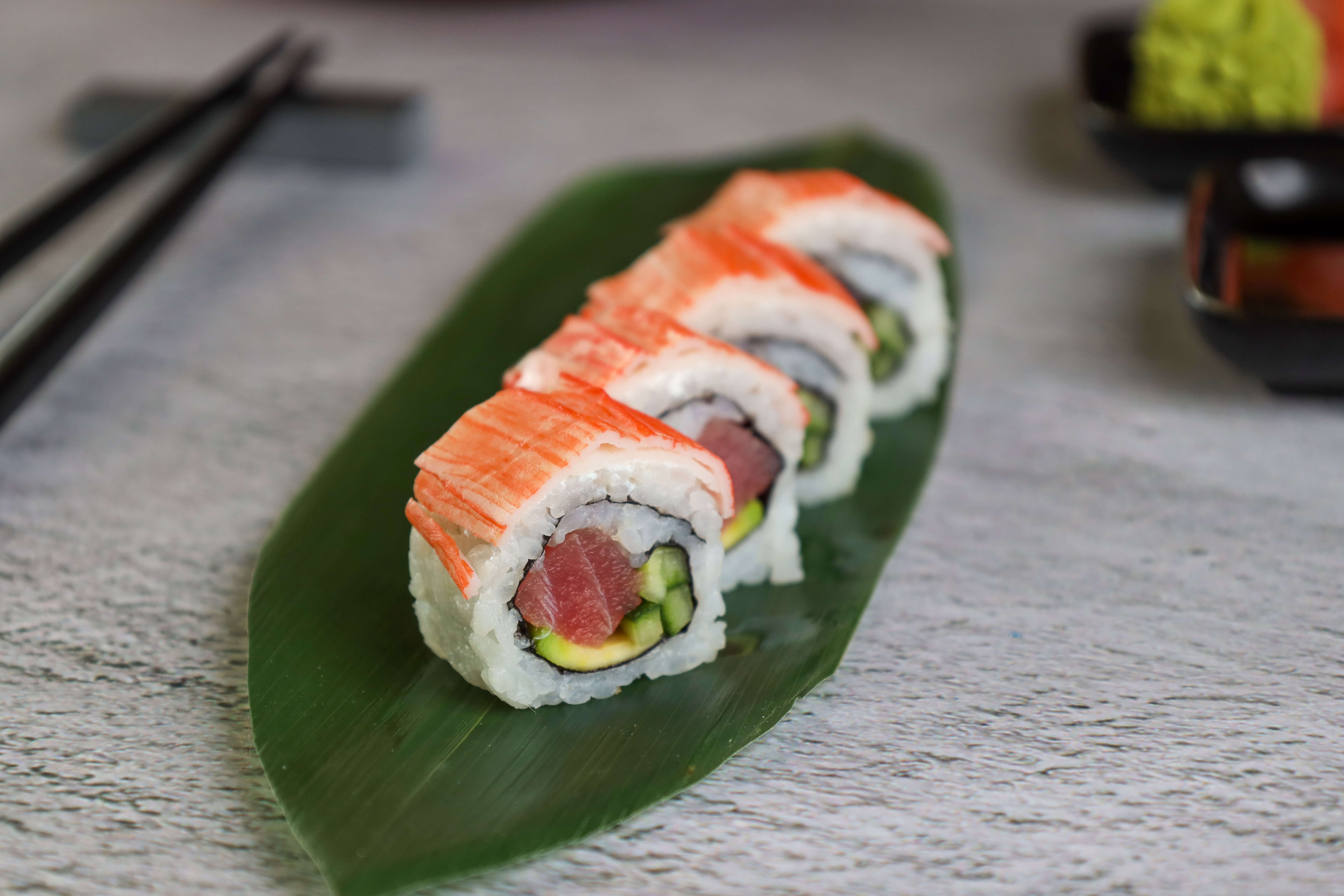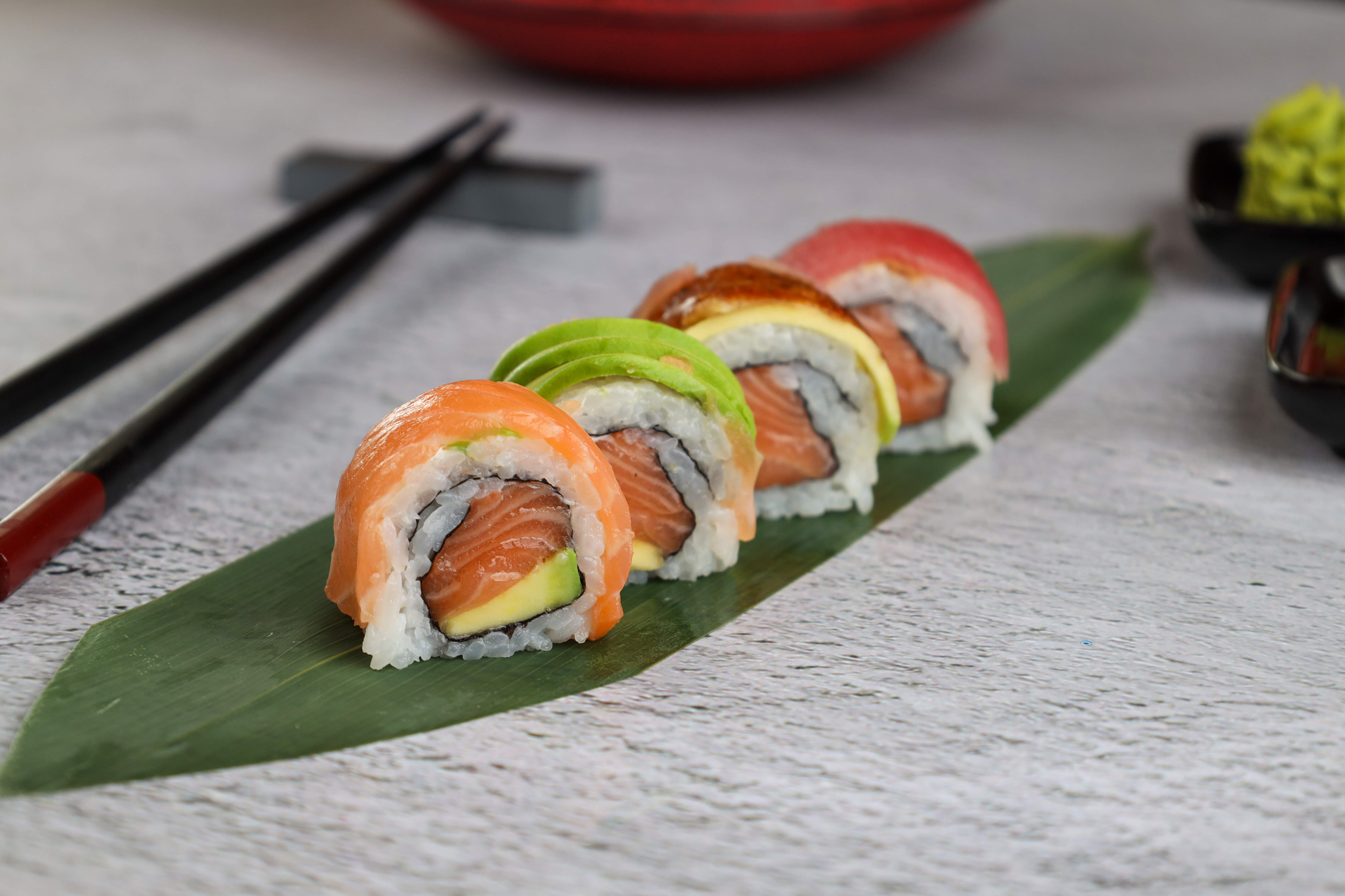 سوشي التنين؟ عبارة عن رول خاصة محشوة بأوراق نوري ملفوفة حول المكونات من الداخل وأرز السوشي من الخارج. هنا، يتم وضع سمك السلمون وتيمبورا الروبيان والخيار داخل النوري، وفي الأعلى مغطى بسرطان البحر والأفوكادو . يرش المايونيز والصلصة الحارة وصلصة أوناجي، مما