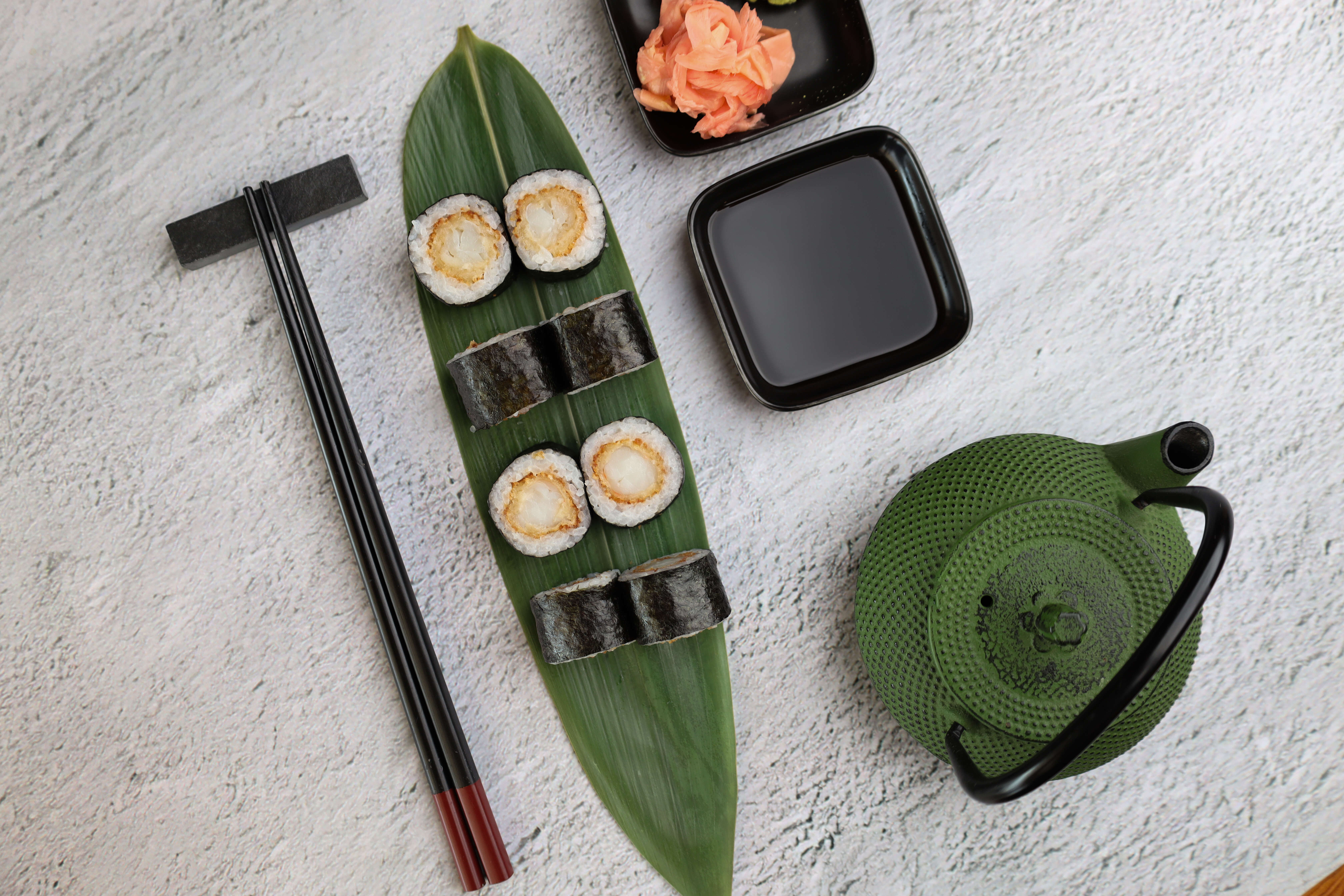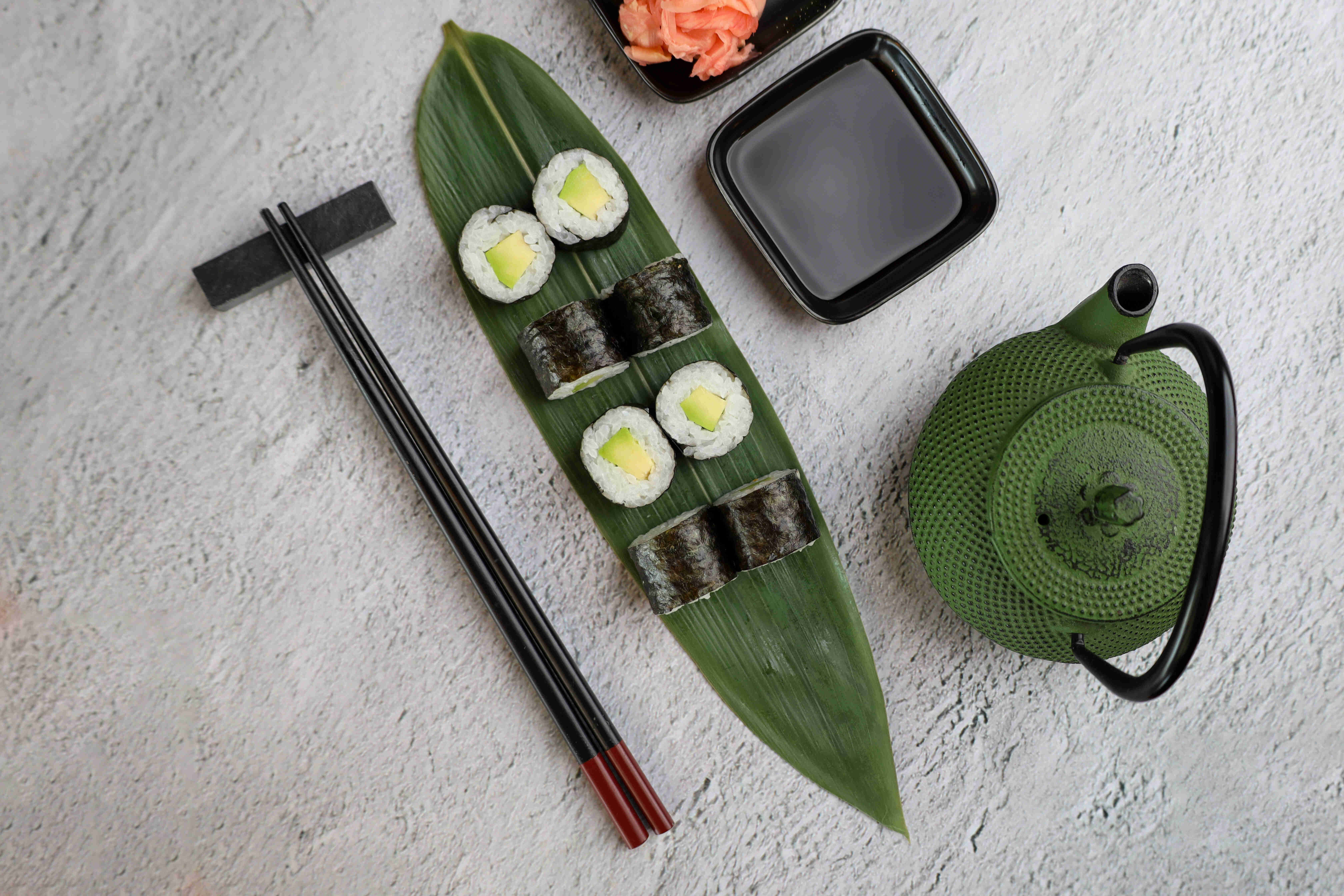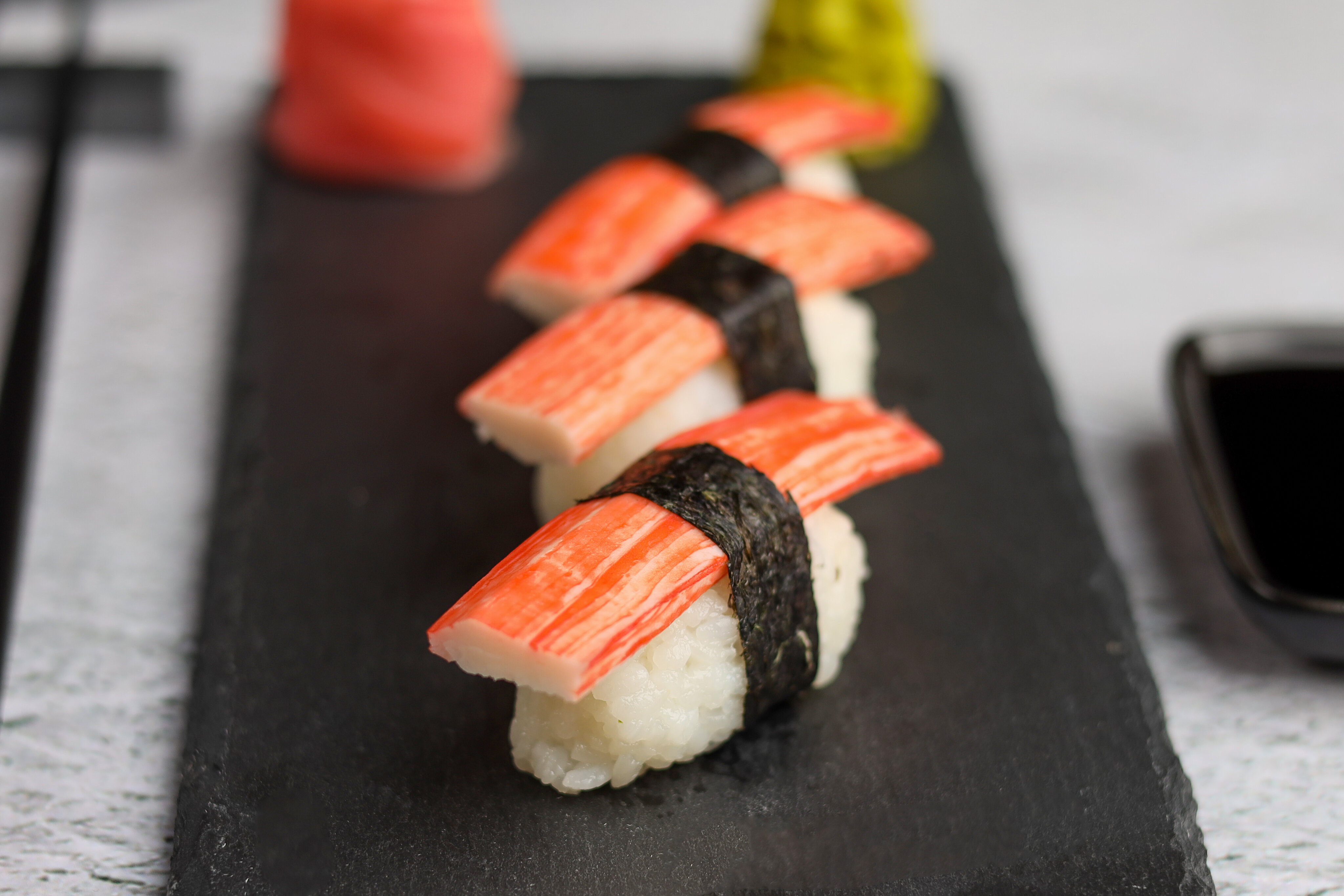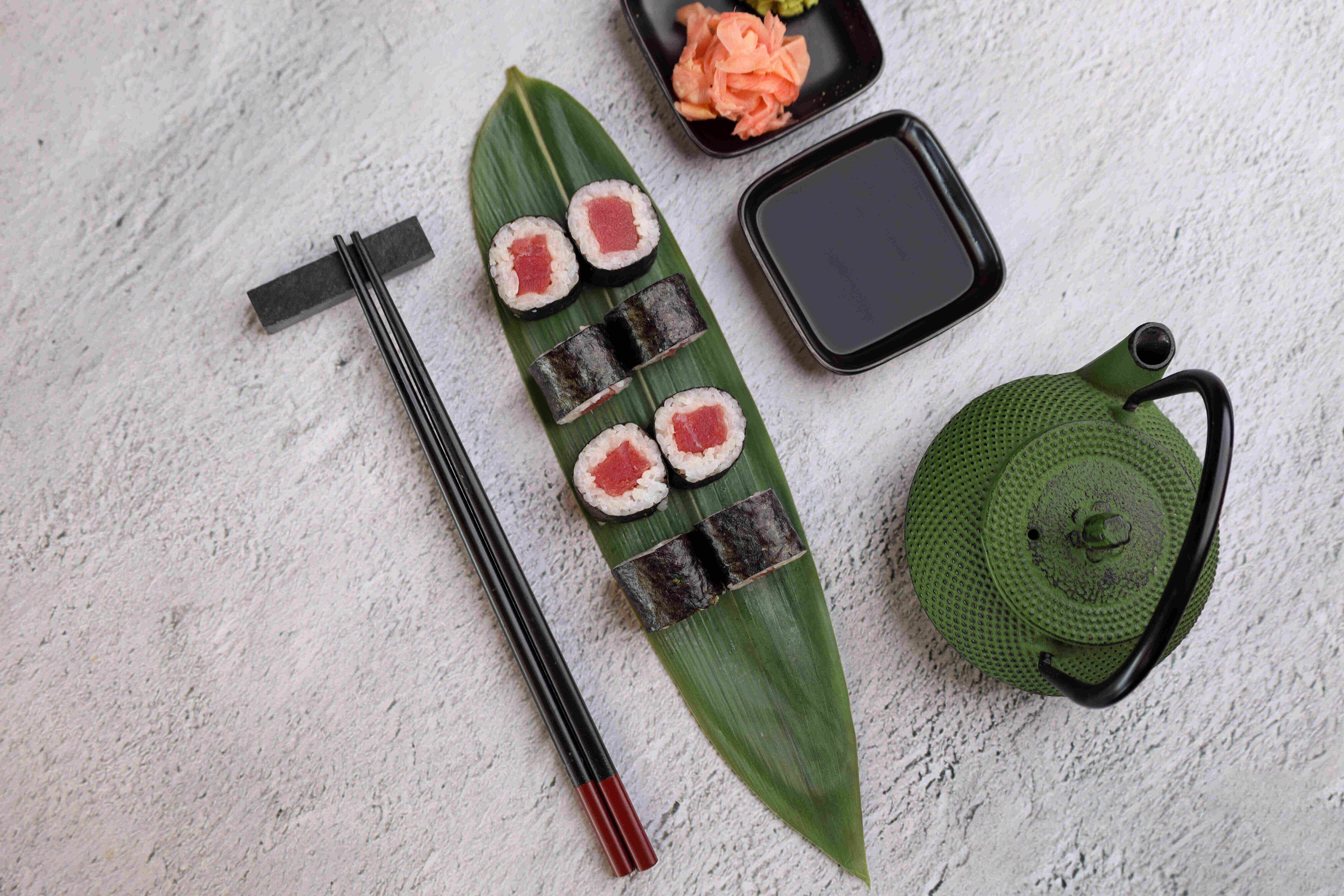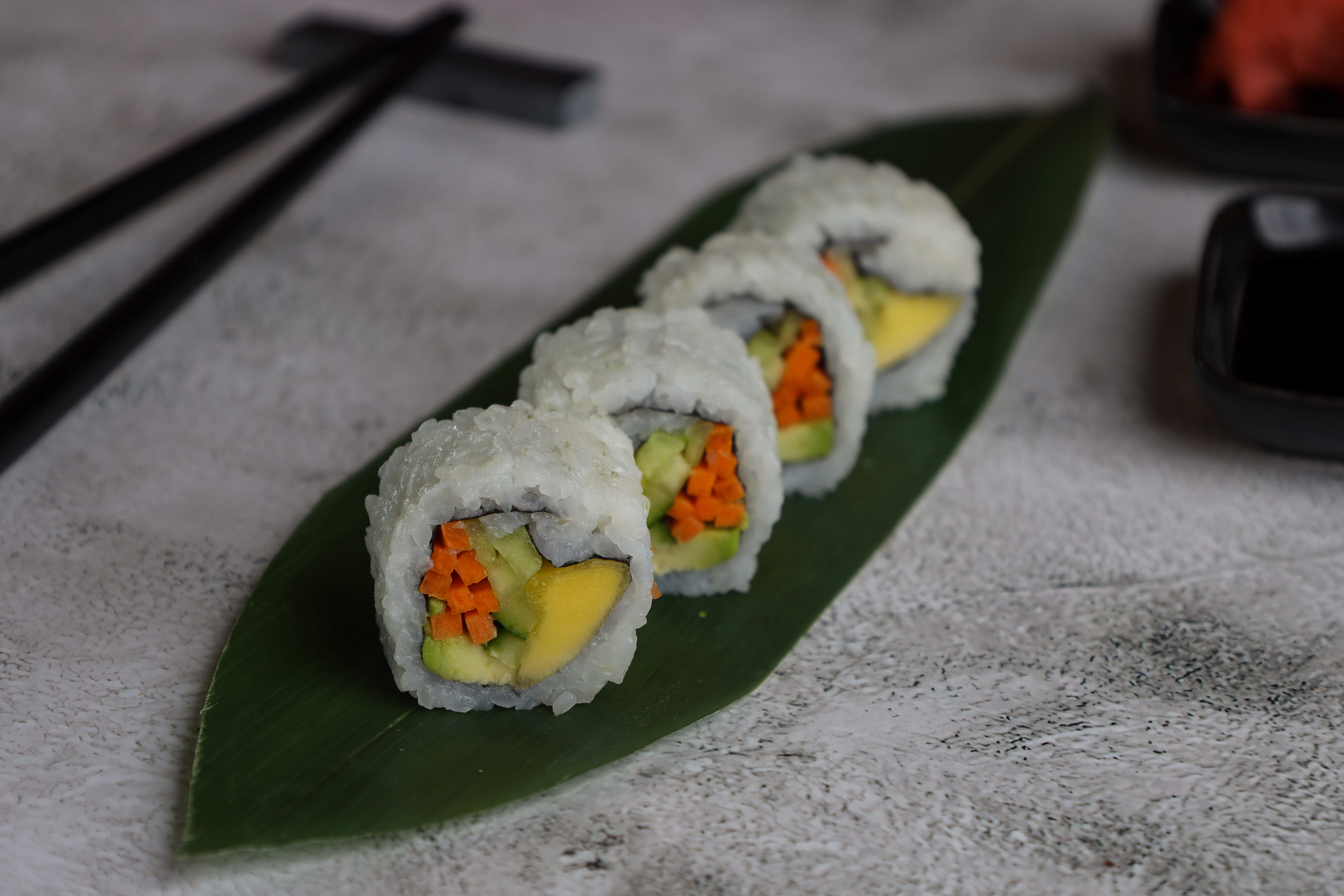 سوشي التنين؟ عبارة عن رول خاصة محشوة بأوراق نوري ملفوفة حول المكونات من الداخل وأرز السوشي من الخارج. هنا، يتم وضع سمك السلمون وتيمبورا الروبيان والخيار داخل النوري، وفي الأعلى مغطى بسرطان البحر والأفوكادو . يرش المايونيز والصلصة الحارة وصلصة أوناجي، مما
