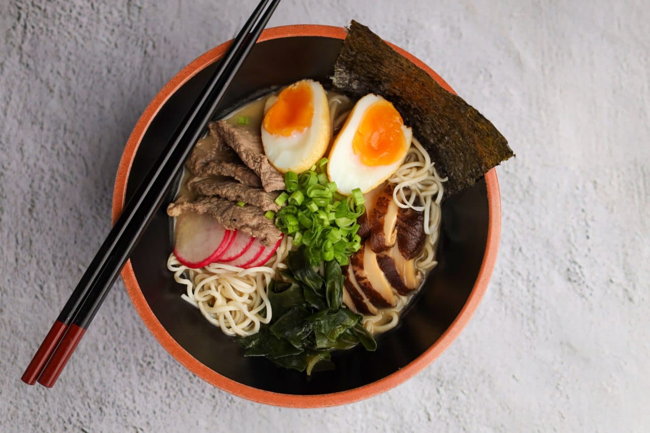 الرامن هو حساء المعكرونة الياباني، مع مزيج من مرق غني النكهة، وواحد من مجموعة متنوعة من أنواع المعكرونة