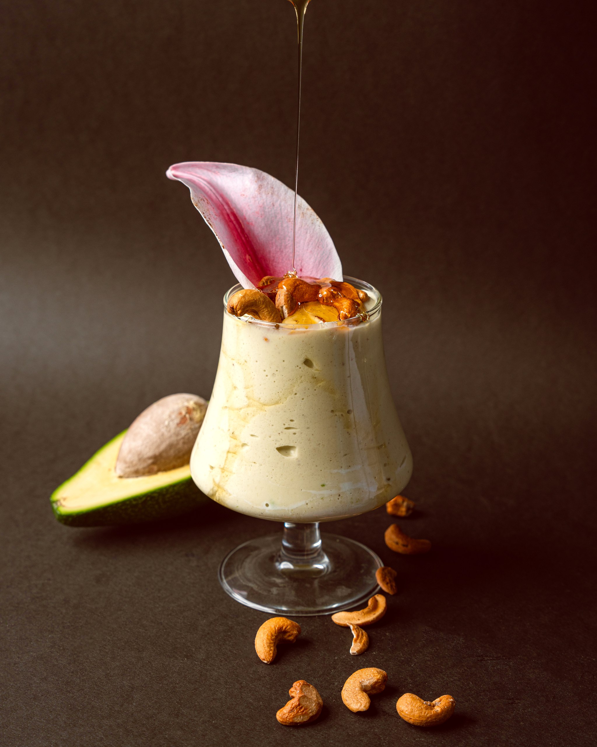 قوارب الأفوكادو ذات الحواف المقرمشة، محشوة بالسلمون المنقوع في الصلصة وسرطان البحر المفروم